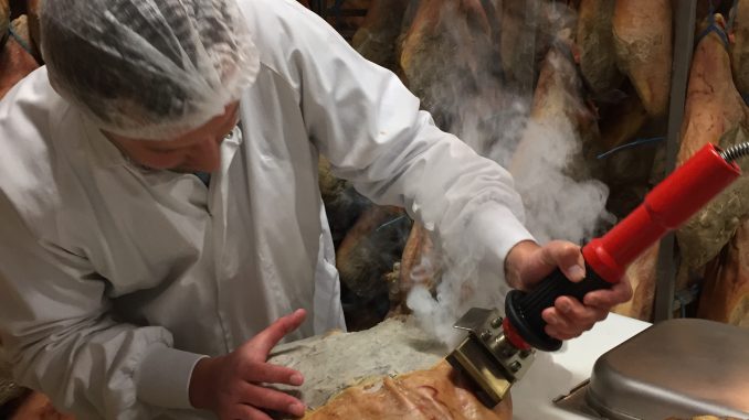Following this step, the process called “Panage” is done to slow down the aging process. A mixture of pig fat, rice flour and pepper is applied to the exposed part of the ham. This will allow for a much gentler aging and the curing of flavors during the long process.