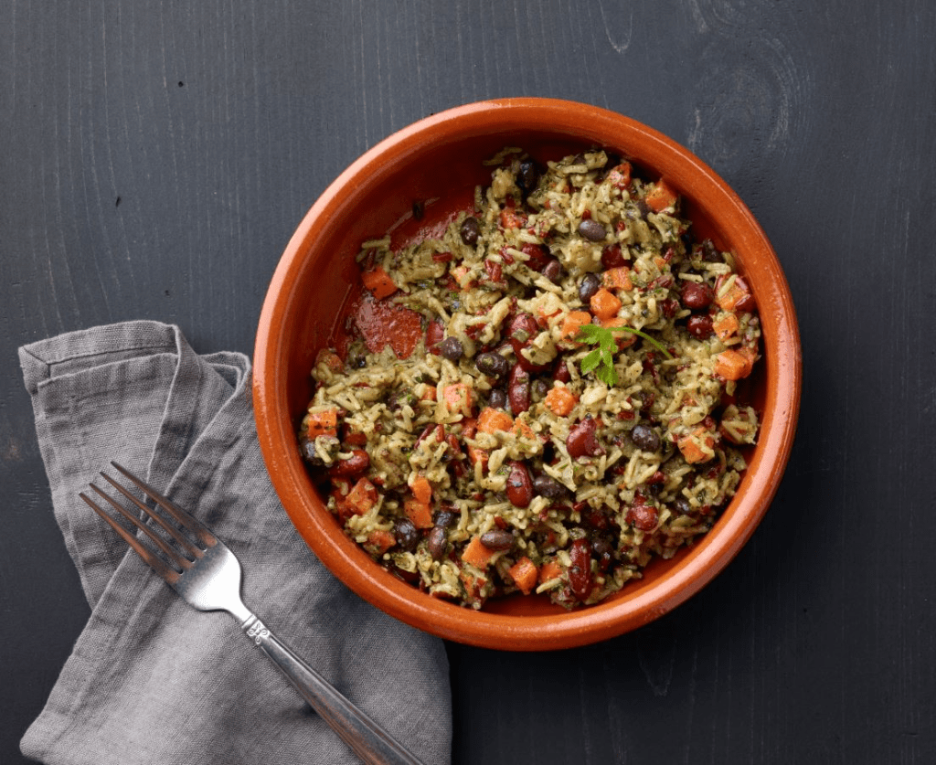 A cup of this robust chili has 12 grams of protein, just 2.5 grams of fat and zero cholesterol.