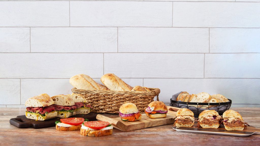 Aspire Bakeries offers a line of artisan sandwich rolls that delis can refrigerate for up to four days. “These breads are sturdy enough to hold large sandwich builds and stand up to rich sauces, dressings, and mayo without breaking down,” says Buenning.