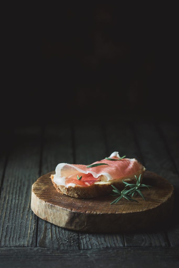 Here’s how the magic happens: the meat is covered in salt and allowed to rest for a few weeks or even months. The salt draws out moisture, which prevents bacteria from growing harmful bacteria and concentrates its flavor. After salting, the pork legs are washed and seasoned, often with a secret family recipe involving black pepper, juniper, garlic or rosemary for a unique and fragrant flavor. They’re then left to dry-age in a carefully temperature- and humidity-controlled environment for a year or more. The longer prosciutto is aged, the more complex it will taste. Pork, salt, air and time combine to create something more delicious than the sum of their parts.
