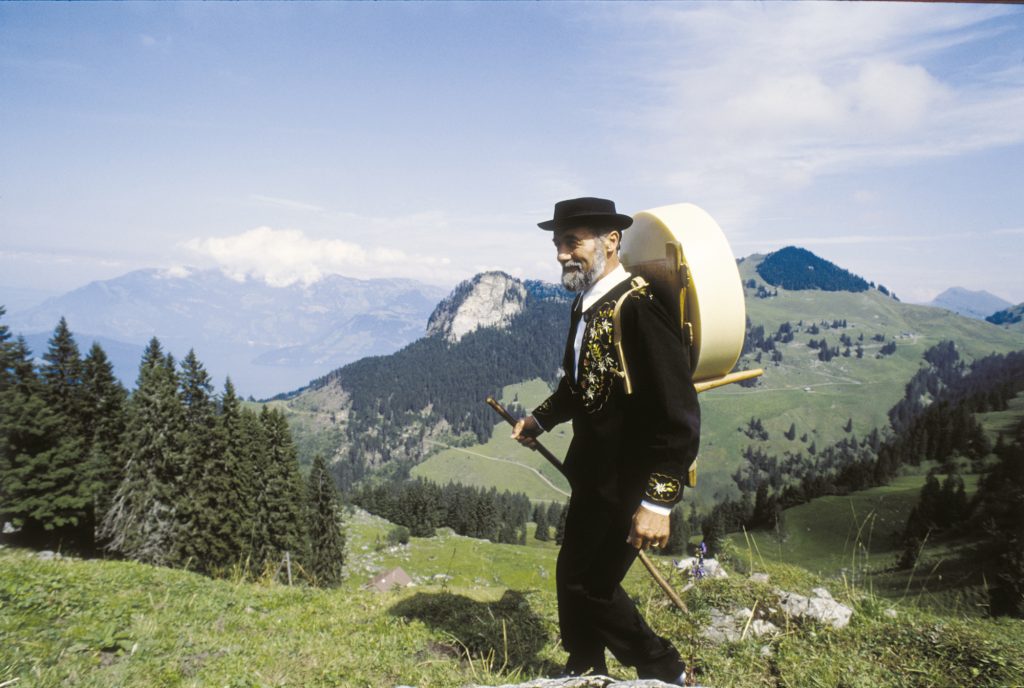 In Appenzellerland, cheese and butter have always traditionally been made on the mountain range. The products were then picked up by the dairyman, who would visit every one or two weeks with pack horses. He would load two wooden hold- ers with the farmer’s butter and cheese, then take them down the valley below to a dairy where the cheese was matured. Afterwards, the mature cheese was brought to market. The cow herdsmen and the dairyman worked together, somewhat like partners. One processed the milk and the other took away the dairy products to market. They relied on each other for the success of their livelihood.