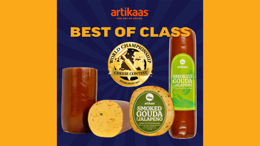 GARDEN CITY, N.Y. – Artikaas, imported exclusively by Dutch Cheese Makers, is proud to announce that Artikaas Smoked Jalapeño Gouda has been awarded Gold / Best of Class at the 2026 World Championship Cheese Contest, earning an impressive 99.13 score in the Pasteurized Process Cheese Product category.