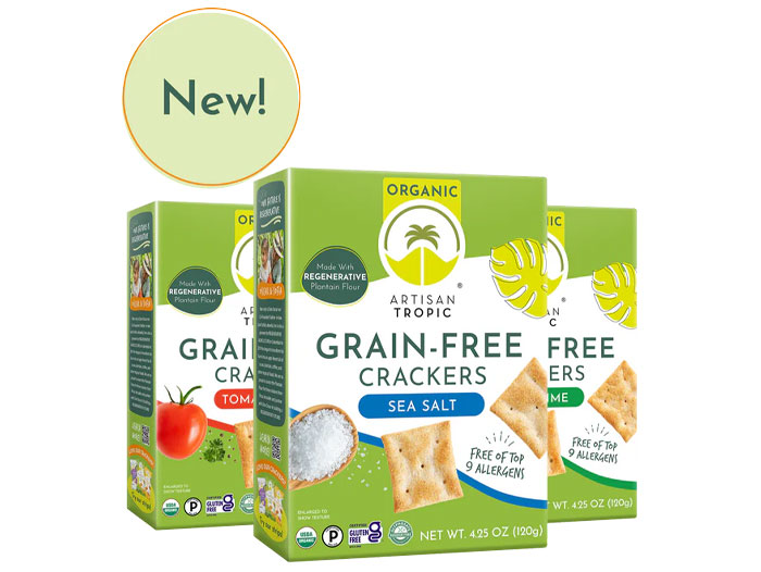 Family-owned and operated, Artisan Tropic has been a leader in crafting delicious plantain and cassava chips. Now, they’re adding a new snack into the mix with the launch of their three brand-new regenerative plantain flour crackers, featuring Sea Salt, Chile Lime, and Tomato Herb flavors. They’re everything crispy and crunchy that you’d expect from a cracker and more. These crackers’ star ingredient, plantain flour, hails straight from a regenerative farm oasis in the lush coffee region of Colombia, giving them a unique and wholesome element with an environmentally-minded appeal.