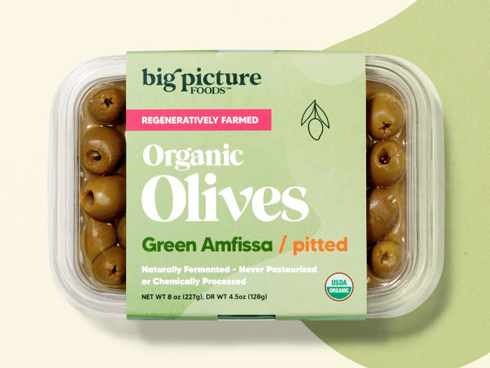 Big Picture Foods is a mission-driven company dedicated to creating deliciously flavorful, clean ingredient foods that restore the health of people and the planet. Specializing in Mediterranean products like olives, peppers, and capers, all of which are Regenerative Organic Certified by the Regenerative Organic Alliance, Big Picture Foods utilizes slow curing processes that leverage wild native cultures and natural fermentation. The company has successfully scaled a small batch craft fermentation process to national distribution, thanks to longstanding relationships with regenerative organic farmers, and can significantly scale. For more information visit bigpicturefoods.com