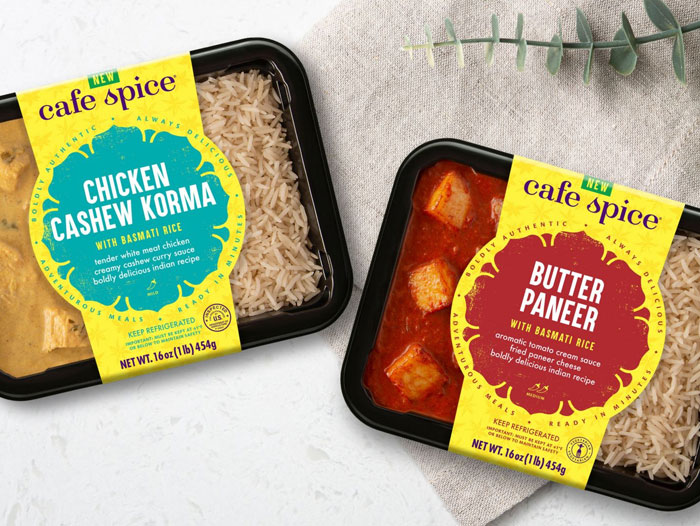 NEW WINDSOR, N.Y. – Cafe Spice, the award-winning, globally-inspired brand, recently announced that they have developed two new retail combo meals, Butter Paneer and Chicken Cashew Korma, for consumers to purchase in the prepared food aisle. Currently stocked in limited grocers, plans for extended distribution across additional retailers throughout the country, are forthcoming. The two new meals, both paired with their signature basmati rice, will highlight the aromatic and distinct flavors reminiscent of regions of India that Cafe Spice is known for.