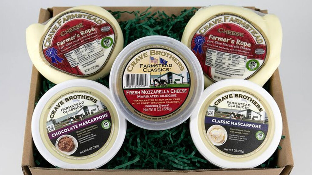 The Crave family farms 2,500 acres of productive land in south-central Wisconsin, growing soybeans, corn and alfalfa to use as nutritious feed for their Holstein cows. From the biodigester to water recovery and recycling, sustainability is top-of-mind on the farm and cheese factory. Crave Brothers Farm LLC and Crave Brothers Farmstead Cheese LLC utilize sustainable practices in their everyday operations. Crave Brothers Farmstead Cheese produces Fresh Mozzarella, Mascarpone, Chocolate Mascarpone, Oaxaca, and Farmer’s Rope String Cheese.