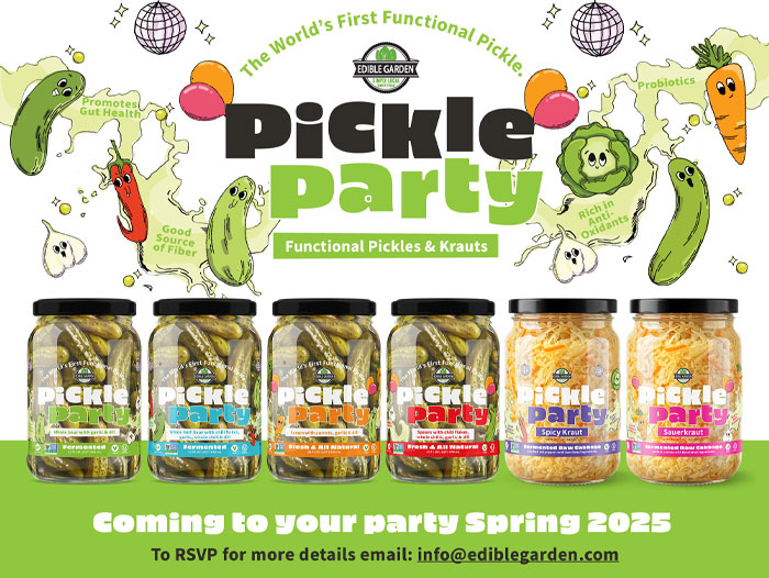 With a strong commitment to sustainability and clean-label ingredients, Edible Garden continues to redefine the way consumers experience condiments. The Pickle Party line, the world’s first functional pickle, developed in partnership with Hermann Pickle Company, features sustainably sourced, fermented Kosher, Non-GMO pickles and sauerkraut, delivering exceptional freshness and quality with every bite. The Pulp product line of fermented, sustainably crafted gourmet sauces and chili-based products is already available at major retailers such as Target, Whole Foods, Morton Williams, Dierbergs Markets, and Woodman’s Market. Designed to elevate everyday meals, these bold, complex flavors bring a unique depth and richness, setting them apart in the fresh condiments category.