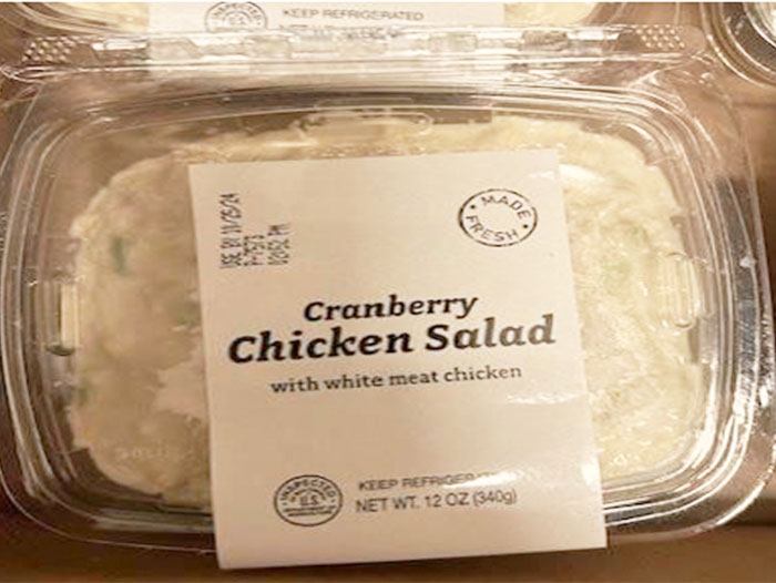 - 12-oz. clear plastic packages containing “Cranberry Chicken Salad with white meat chicken” with a use-by date of 10/25/24.