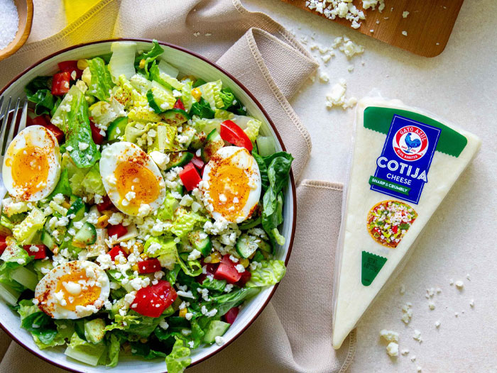 – Cotija: A firm and crumbly Mexican aged cow’s milk cheese with a sharp, slightly salty flavor, perfect for enchiladas, tacos, and street corn toppings.
