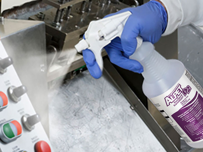 Alpet® D2 Surface Sanitizer is an alcohol-based (58% IPA/Quat formula) surface sanitizer that is ready-to-use, highly evaporative, and ideal for water sensitive equipment. It is recommended for use as a cleaner and sanitizer on hard, non-porous food surfaces and food contact surfaces such as conveyors, belts, driers, blanchers, roasters, refrigerators, freezers, hoppers, extruders, fillers, blenders, meat/cheese/deli slicers, choppers, dicers, grinders, and much more.