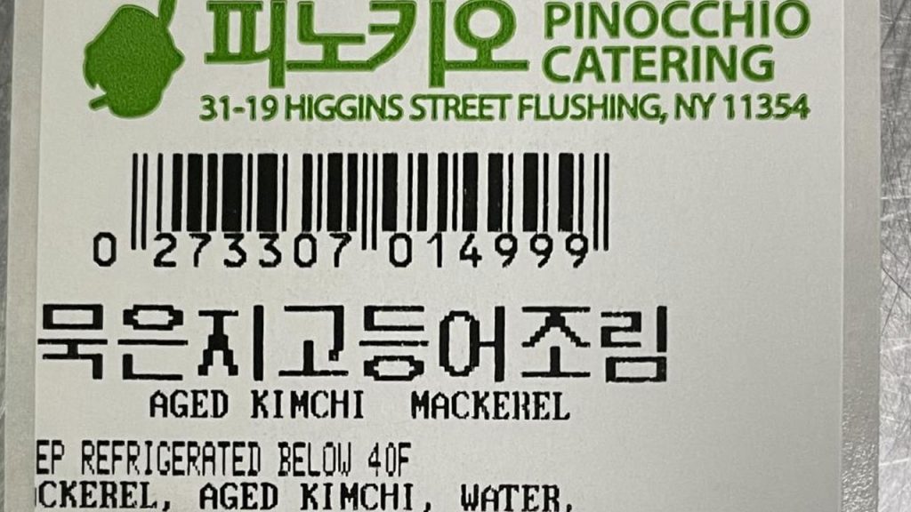 The recalled “Stewed Aged Kimchi W/ Mackerel” were distributed to NY and NJ in supermarkets. The product comes in a 57-ounce, black bottomed plastic container labeled with UPC# 27300700000 on the top with an expiration date prior to 09/16/25.