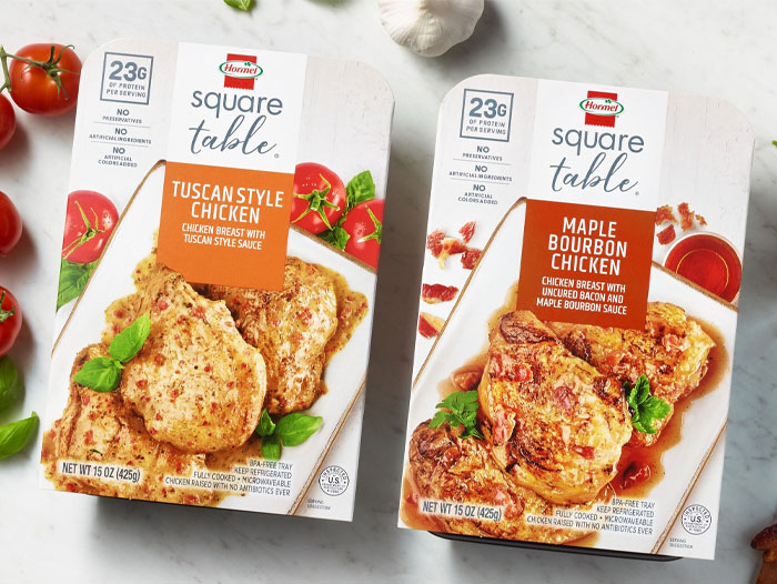 With the popularity of convenient meal solutions on the rise, the HORMEL® SQUARE TABLE® brand team expands protein-rich portfolio with Tuscan Style and Maple Bourbon Chicken varieties