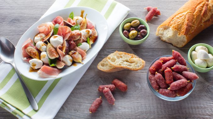 According to Adelson, the salami category continues to grow in the U.S., so you’ll see more products, flavors, sizes and combination packs—even salame blended with spirits like whiskey. “The snacking and protein diet trends have created a whole new category of small artisan salame sticks, bites and snack packs, “he says. This June, Veroni will roll out several new individual snack packs and sharing trays. Like charcuterie boards, the Veroni Aperitime (Aperitivo Time) trays offer an array of artisan products, such as combining salami with cheese, nuts and dried fruit.